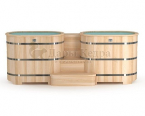 Купель двойная овальная гладкая столярная из кедра с пластиковой вставкой