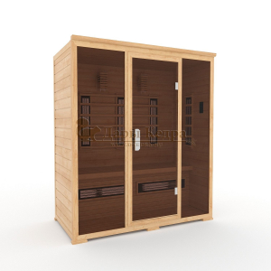 Это специально оборудованная кедровая кабина для прогрева тела человека сухим теплом. Воздух в таких парных не нагревается. Инфракрасные лучи воздействуют на тело, равномерно прогревая мышцы, суставы и органы. Керамические излучатели похожи на лампы, имеют высокую температуру нагрева, поэтому защищены противоожоговыми решетками. Тело человека в таких саунах нагревается интенсивнее. Работает кабина за счет электричества. Трехместная инфракрасная сауна с керамическими излучателями подойдет как для домашнего использования, так и для коммерции.