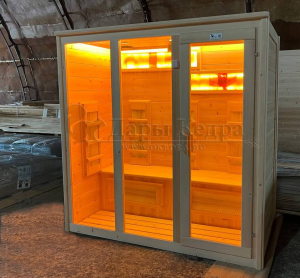 Инфракрасная сауна из кедра представляет собой кабинку с ик-нагревателями. Главное отличие такой кабины от финской парной или классической бани заключается в прогреве тела, а не воздуха. Внутренний прогрев тканей считается полезным и щадящим, за счет чего в инфракрасной кабине могут принимать лечебные процедуры даже дети и пожилые люди.