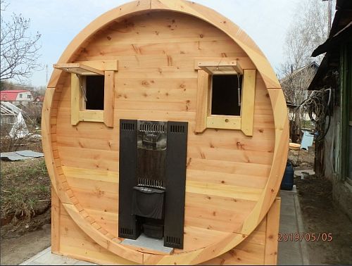 Баней-бочкой пользуемся не первый год. Эксплуатацией вполне довольны! Красивая модель, очень необычная, топится быстро!